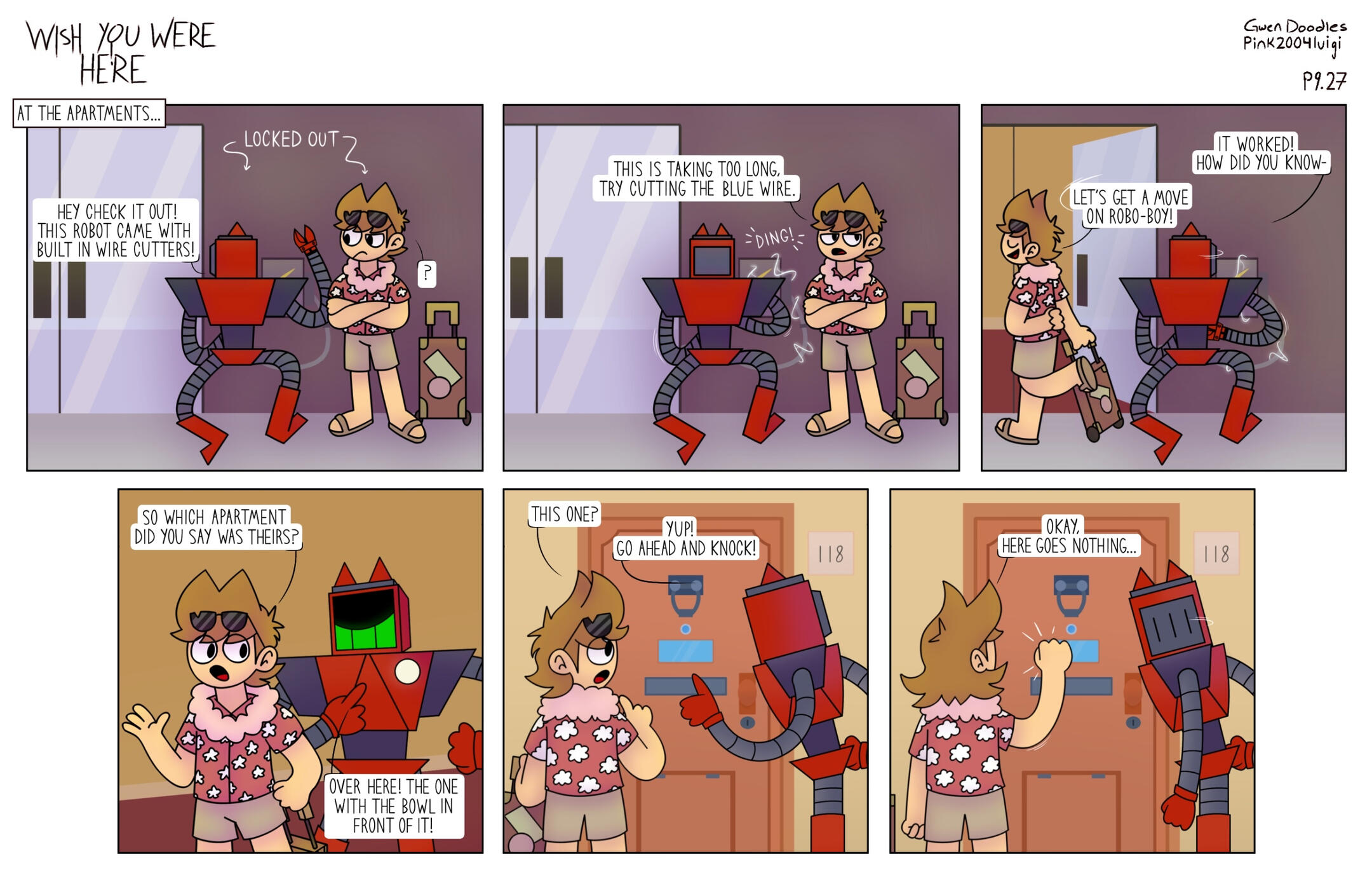As an artist, I have participated in multiple ongoing projects to give myself more experience and to make myself known in the community to which they belong.The biggest ongoing project I'm helping with is a comic named Wish You Were Here. The comic is a fan-made continuation of a web series called Eddsworld and is currently admired by many people, including members working on the series it's based upon. I'm one of the comic artists and social media managers, and I've helped tremendously with its success. Not only have the pages I've worked on received a lot of adoration from the fans, but I was also able to swiftly work on a page that another collaborator had given up on and completed it despite having a strict deadline. In addition to that, I've also made the majority of the WYWH reference sheets.